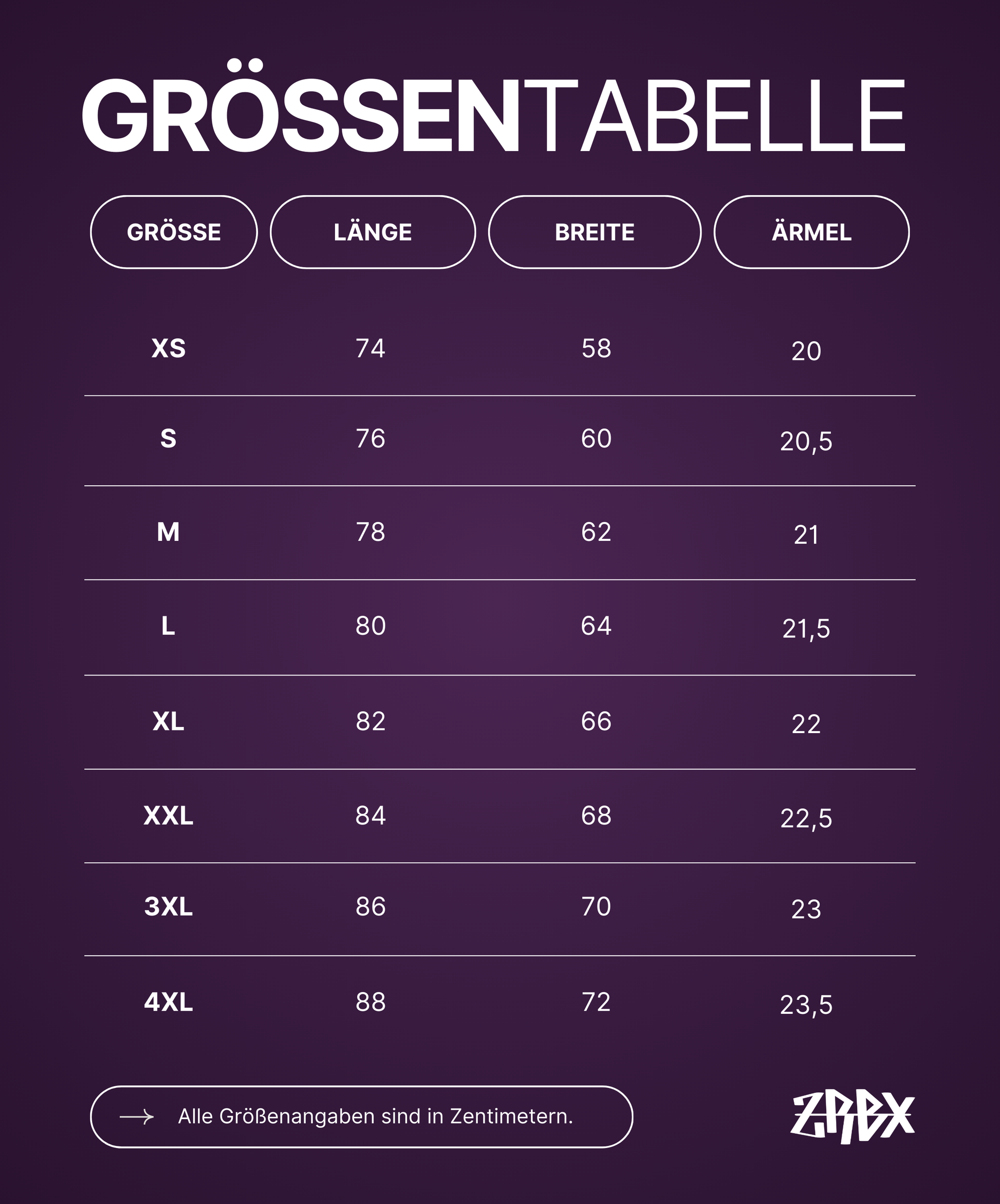 T-Shirt: Für eine normale Passform empfehlen wir, eine Größe kleiner zu wählen.